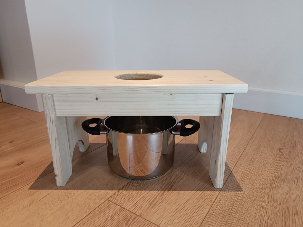 Ručně vyráběná napařovací stolička pro těhotné ženy, ideální pro bylinné vaginální napařování (yoni steam). Vyrobena z kvalitního dřeva, s důrazem na pohodlí, bezpečnost a přírodní péči o ženské zdraví v těhotenství.
